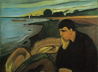 Na tradição iconográfica das artes plásticas, o melancólico é representado com a mão sob o queixo, em atitude pensativa, como mostra outro quadro expressionista de Munch, bem adequado para ilustrar o estado depressivo de Luís da Silva.